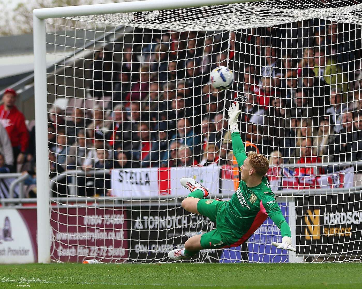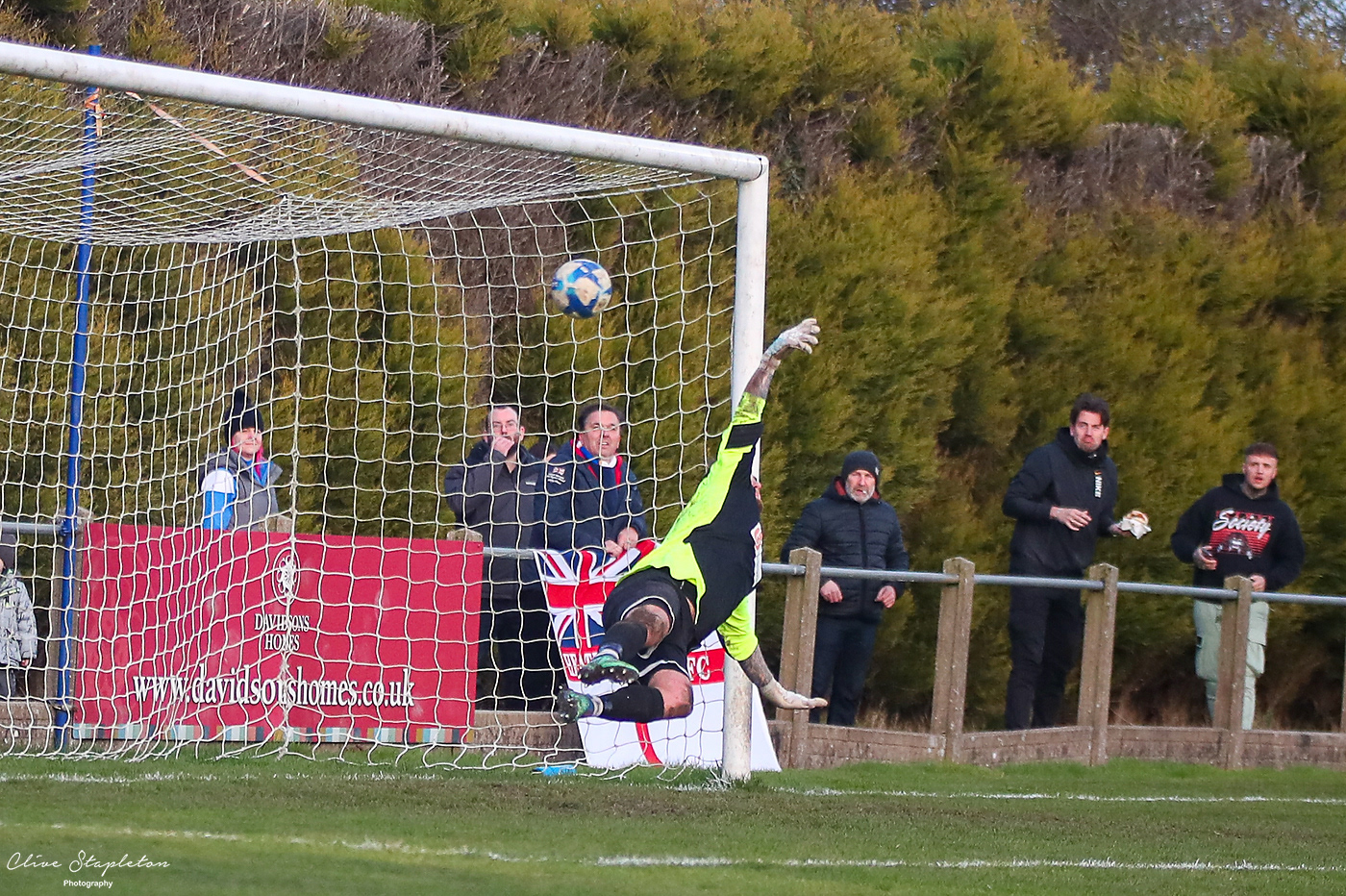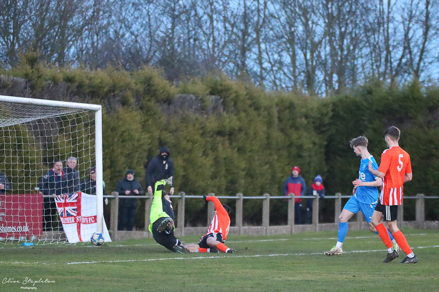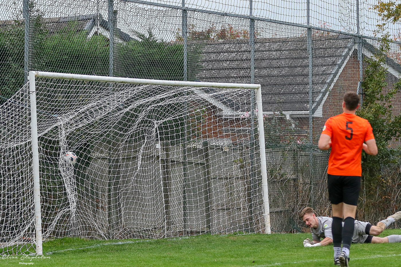 The shot beats Luke Jeffery in Lutterworth Town Goal